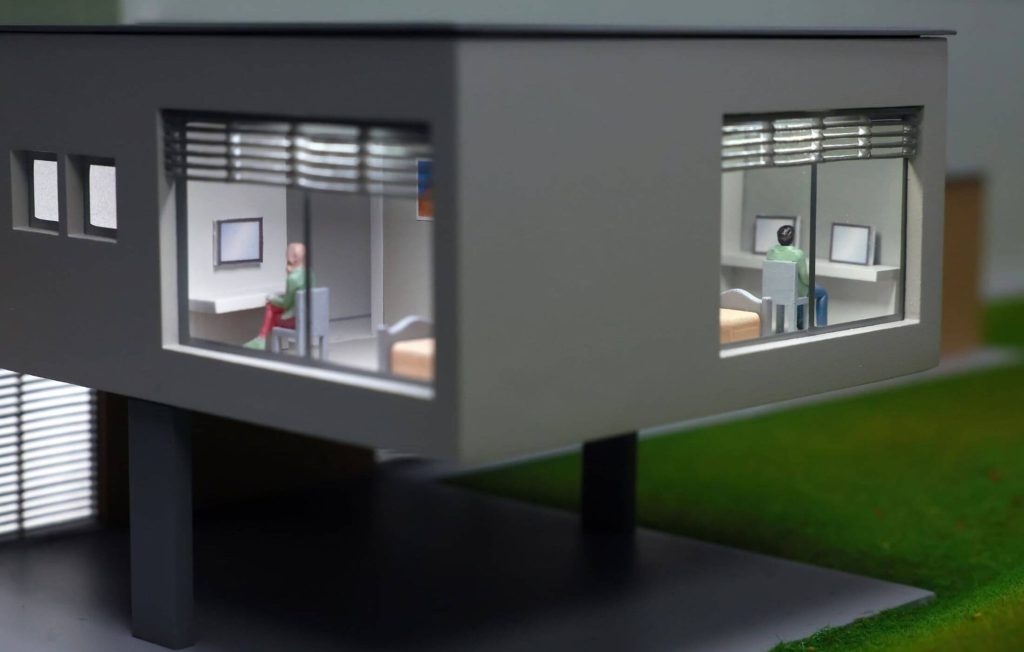 A makett egy leendő épület 3D-s bemutatását segíti.